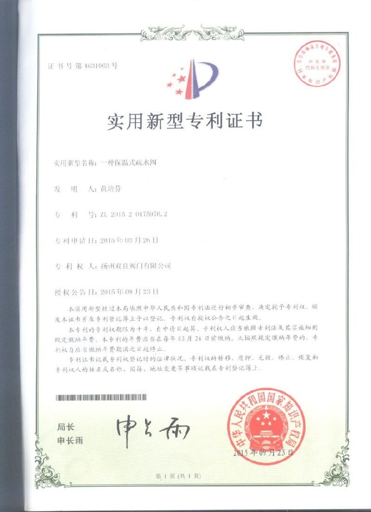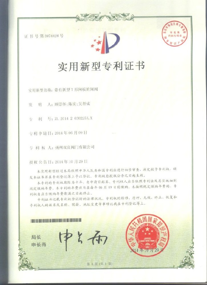 實用(yong)新型專利(li)證書