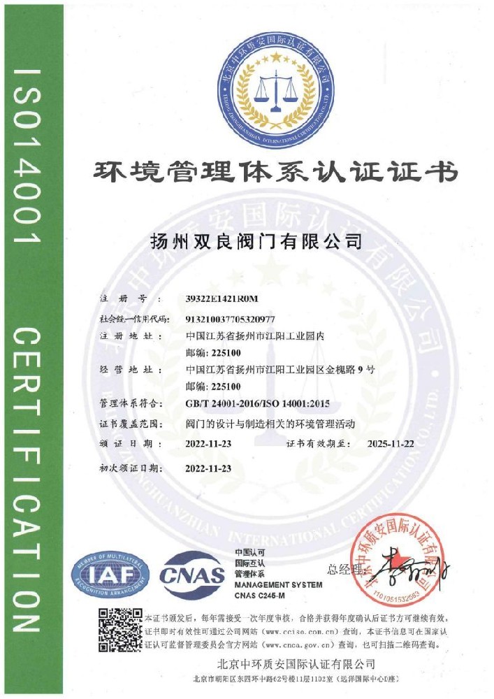 環(huan)境管理(li)體系認(ren)證證書(shu)