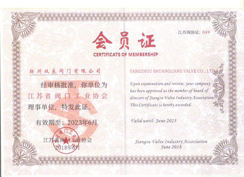 江蘇(su)省閥門(men)協會理(li)事單位(wei)證書