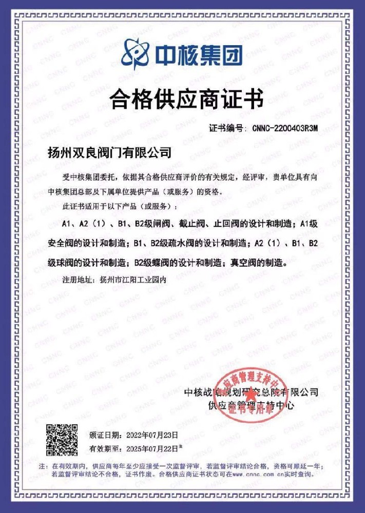 中國核(he)電工程(cheng)合格供(gong)方證書(shu)